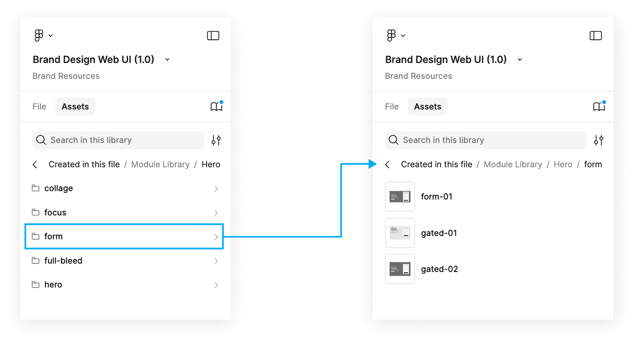 Previously, designers had to source brand elements from various files and designs in order to maintain consistency across projects. To address this challenge, I was tasked with developing a centralized component library, within Figma, that consolidates these resources, enabling our team of brand designers to create more consistent and cohesive designs. This component library included components and variables that consisted of: